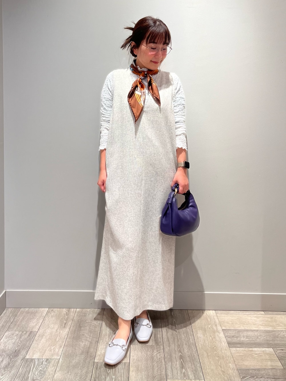 遠藤 裕子(アバハウスルージュヴィフラクレ三井アウトレットパーク 滋賀竜王店(LADIE'S))のワンピース「【大人のいちまんワンピ】ツイードジャンパースカート」を使ったコーディネート
