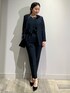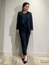 ネイビーの上下にシンプルなコートを合わせたフォーマルコーデ!