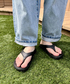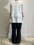 丈が長過ぎないシアーブラウスにインナーを合わせて動きのあるコーデに!