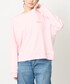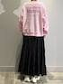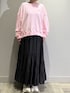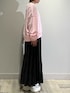 柔らかなピンクカラーのスウェットはグレー系ボトムが相性ぴったり!