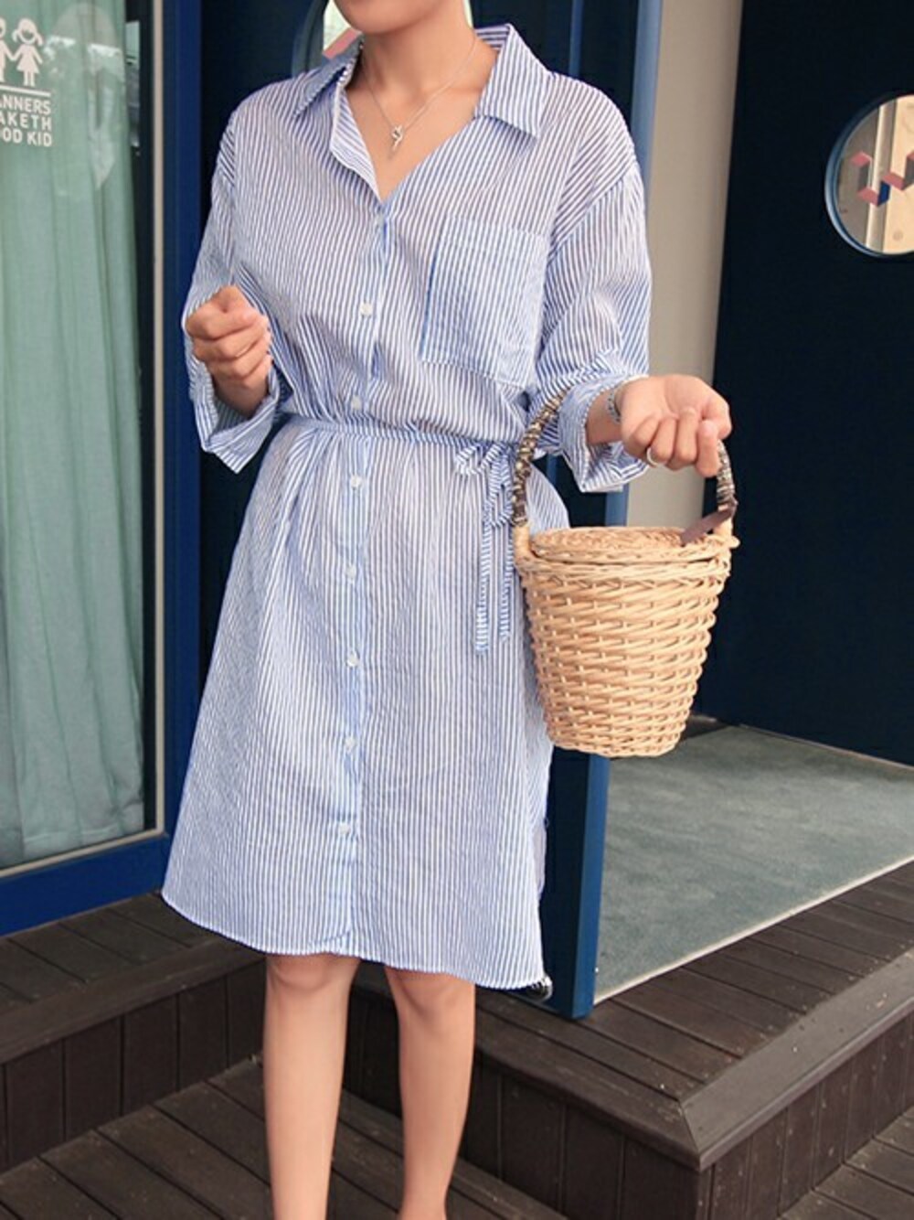ZEMMAWORLDのシャツワンピース「ストライプシャツワンピース」を使ったコーディネート