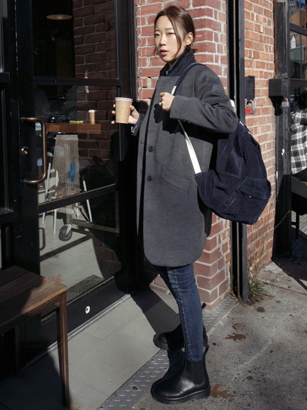 ZEMMAWORLDのチェスターコート「モダンムード裏キルティングコート」を使ったコーディネート
