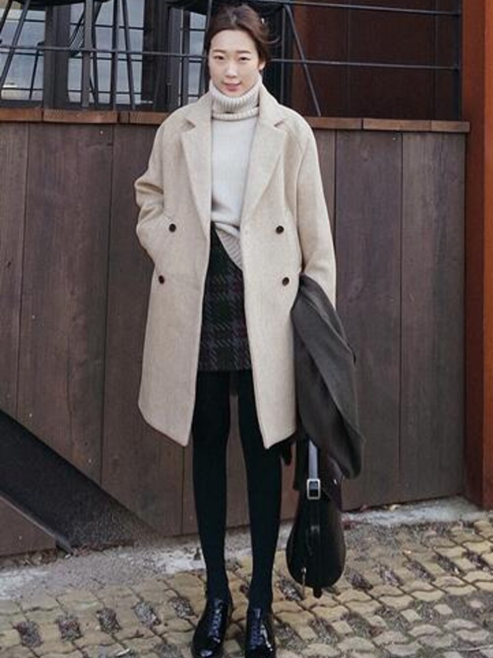 ZEMMAWORLDのダウンジャケット/コート「ウール80%混ラグランスリーブダブルボタンコート」を使ったコーディネート