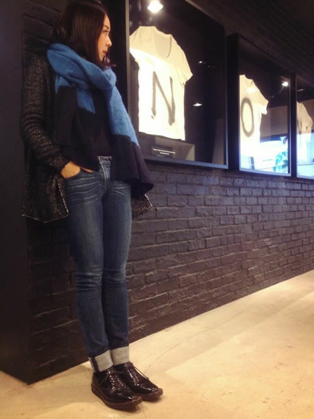 寒い時は、大きな大判のストールやマフラーを首に巻いて寒さを凌ぎます。 基本モノトーンなコーデが好きなので、小物で色味のあるアイテムをチョイスすることが多いです◎ JACKET:JOHN LAWRENCE SULLIVAN