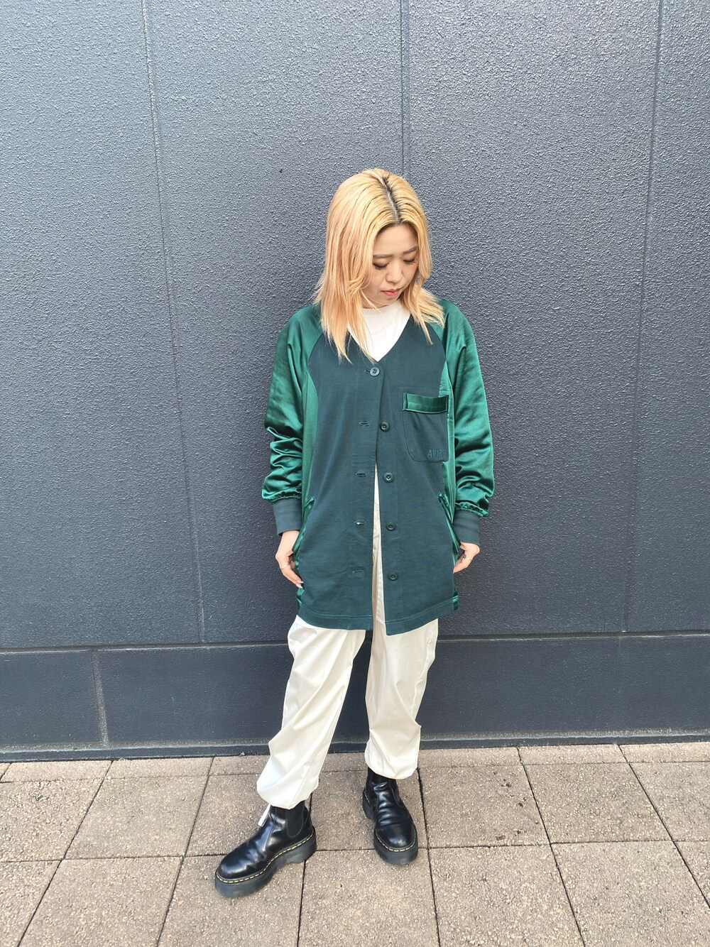 Oga.(AVIREX ららぽーと名古屋みなとアクルス店)のカーディガン/ボレロ「VINTAGE SATIN RAGLAN SHIRT/ ヴィンテージサテン ラグランシャツ」を使ったコーディネート