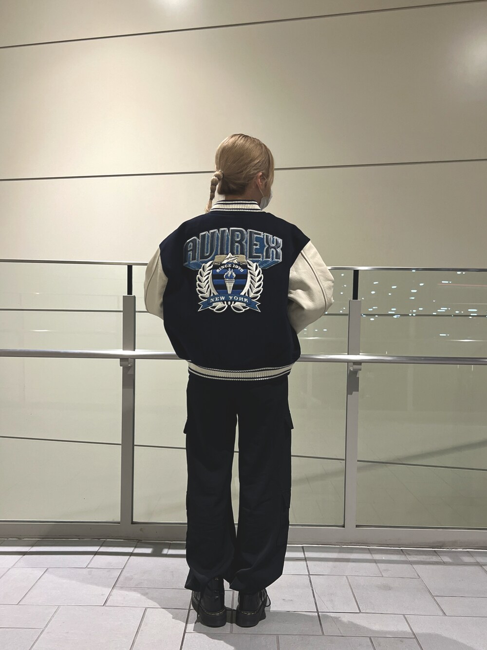 Oga.(AVIREX ららぽーと名古屋みなとアクルス店)のスタジャン「《REBUILD COLLECTION》VARSITY JACKET TORCH & LAUREL/ バーシティージャケット トーチ&ローレル」を使ったコーディネート