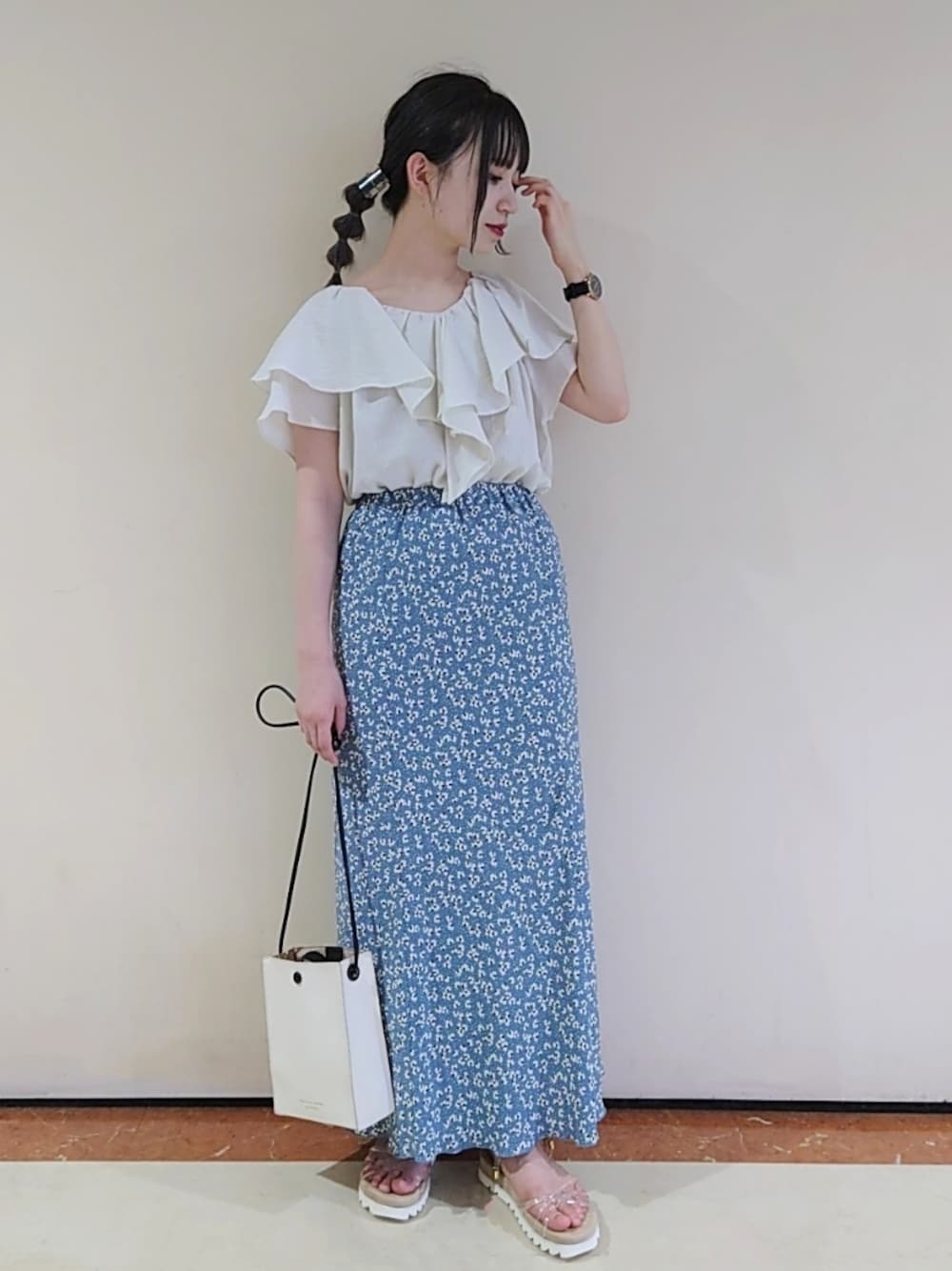 のののスカート「【着丈調節の出来る】フラワーマーメイドマキシスカート」を使ったコーディネート