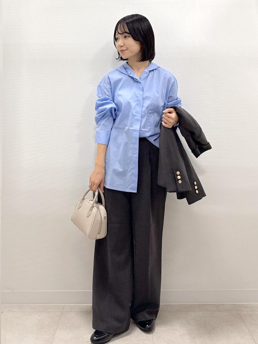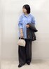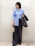 フード付きのシャツをパンツと合わせたシンプルなカジュアルコーデ☺︎