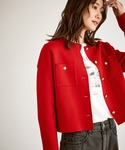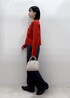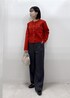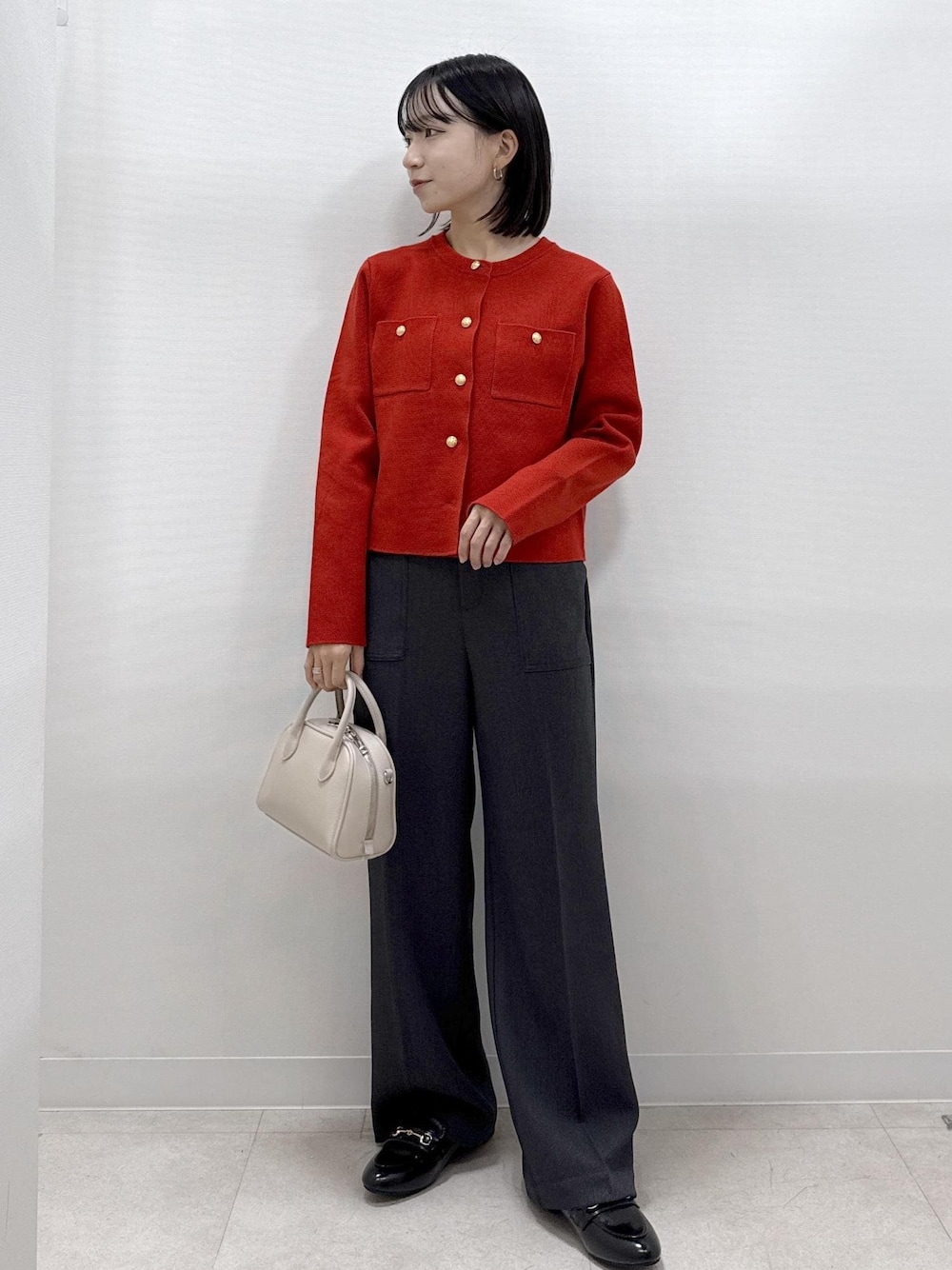 定番ニットカーディガンをキレイめ見えするパンツと合わせたキレイめカジュアルコーデ☺︎ レッドで目を引くコーデにしました!