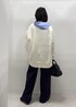 フード付きのシャツにカーディガンを合わせたカジュアルコーデ☺︎