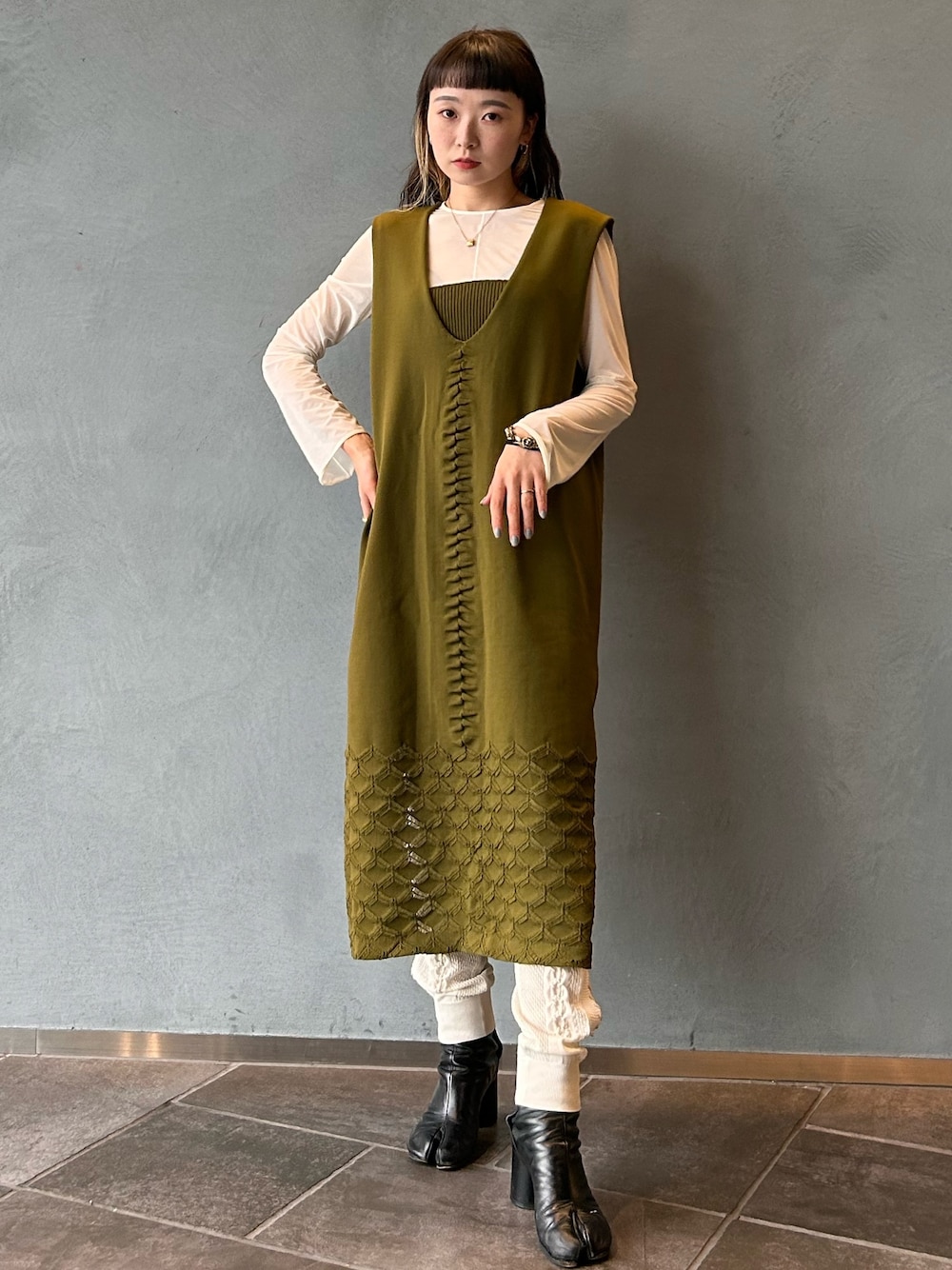 着回し抜群のワンピース。着方も色々遊べる上に、インナー次第でシーズンレスで使えちゃう優れものです!裾部分の透けてるのも可愛い!低身長の方は下にパンツを履かなくても着れちゃいます