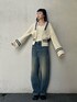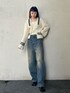 yoheiohnoのニット、前部分を外すとカーディガンとしても着れちゃいます!袖がルーズなのも可愛い!デニムは何にでも合わせられて万能です!