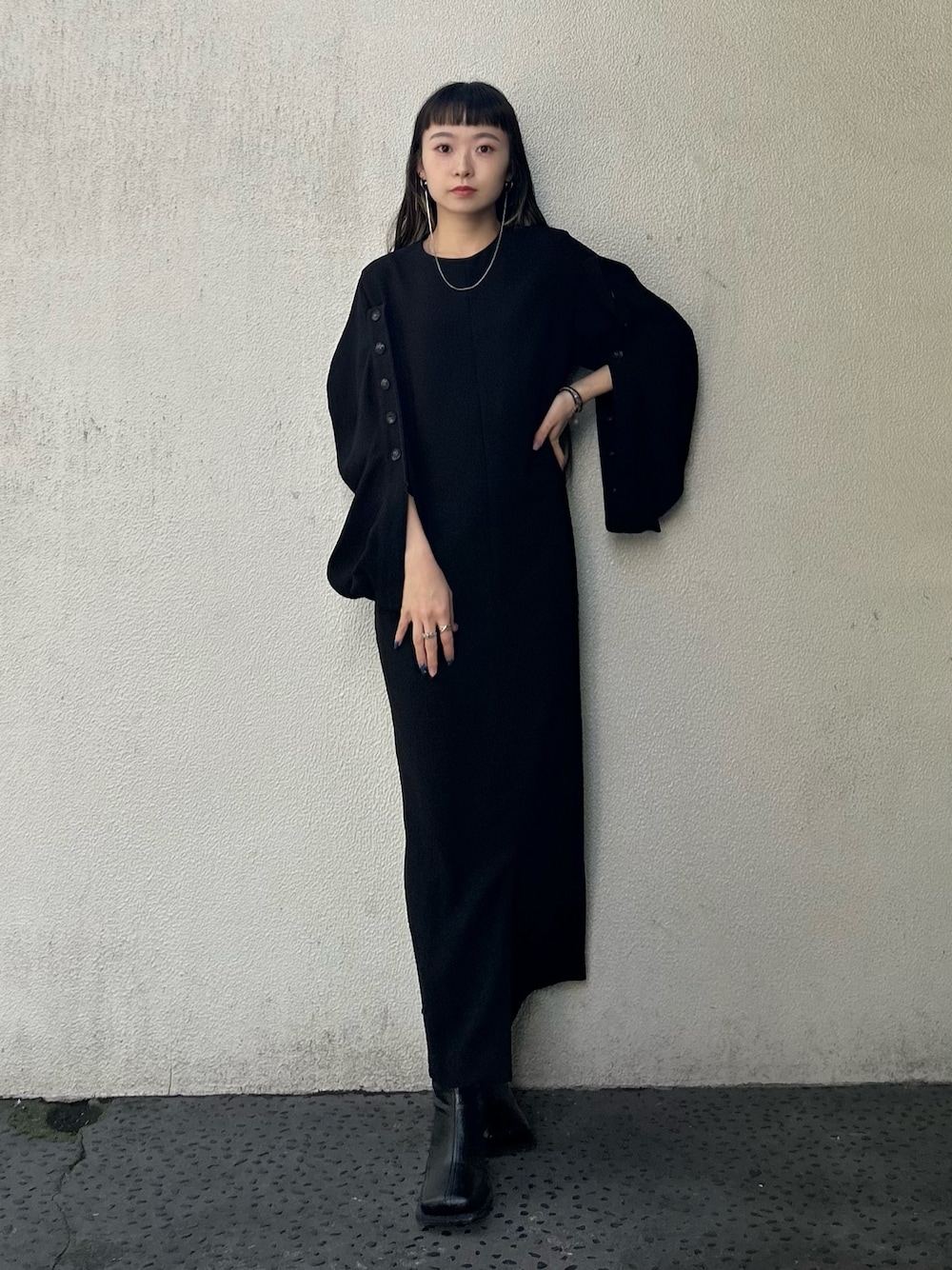 AKIRANAKAのワンピース、シルエットがとても綺麗です。袖部分が動く度に丸くなったりストンと落ちたり。黒のワンピースは沢山ありますが、唯一無二なデザインです。