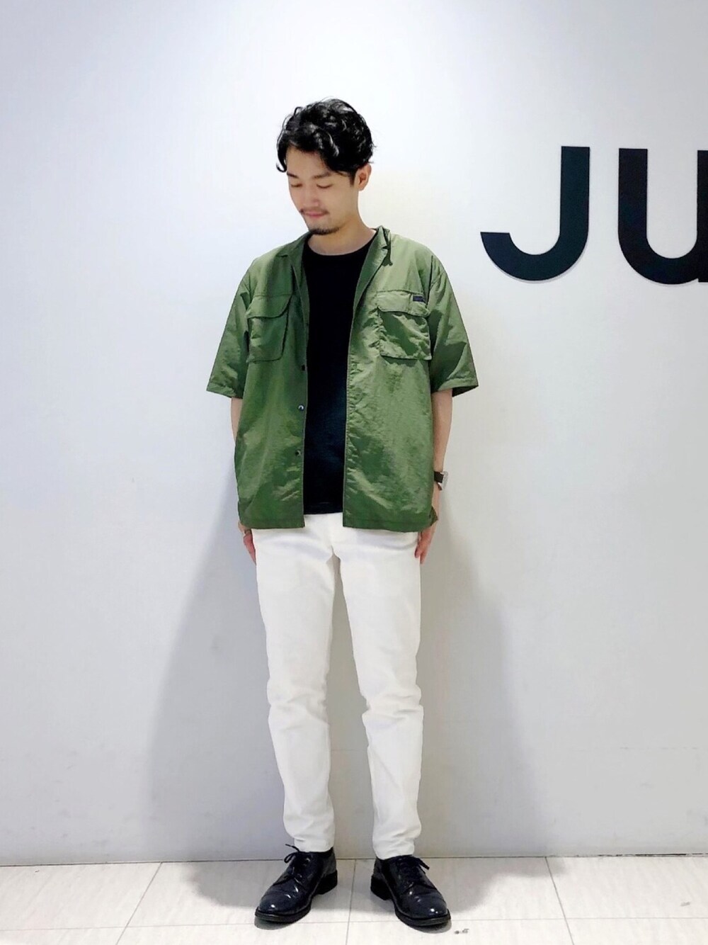 オリーブ×ホワイト 男性らしいカラーリングのアイテムをクリーンな印象に