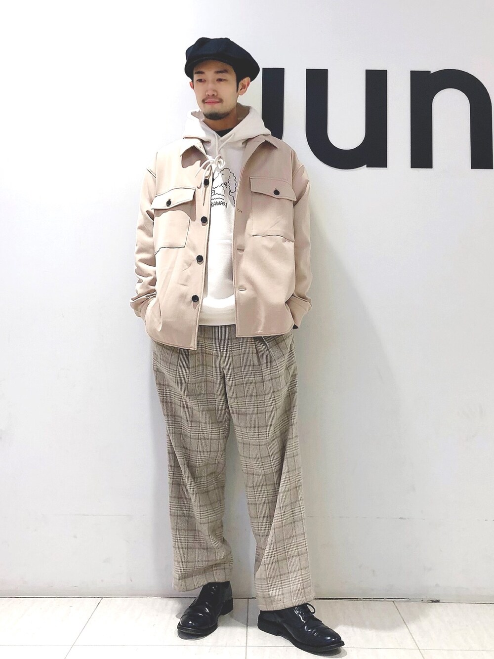 ご好評頂いているkagami kenコラボのパーカーを着用 ライトな着心地で気安く、春先にも重宝するカラーリング