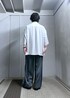 (着用画像の色味が変わって見えることがございます。アイテムページでのカラーの見え方が1番近いのでチェックされてください。) (個人的なアイテムの着用感想を記載しております。アイテムの詳しいサイズ感、生地感等もアイテムページにてご確認ください。) ●スタッフ情報● 大きさの参考にご利用下さい。 身長 174cm 体重 69kg ウエスト 72cm ---------------------------- ご好評頂いているネクタイシャツにトレーニングパンツを合わせたスタイリング どちらも落ち感の強いアイテムなのでモードな雰囲気に