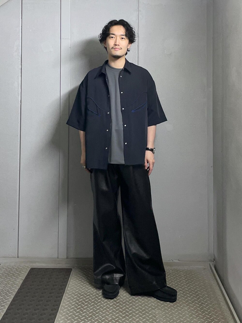 (着用画像の色味が変わって見えることがございます。アイテムページでのカラーの見え方が1番近いのでチェックされてください。) (個人的なアイテムの着用感想を記載しております。アイテムの詳しいサイズ感、生地感等もアイテムページにてご確認ください。) ●スタッフ情報● 大きさの参考にご利用下さい。 身長 174cm 体重 69kg ウエスト 72cm ---------------------------- ウェスタンシャツにレザーパンツを合わせた男性らしいスタイリング カラーをモノトーンで合わせることでシャープな印象に