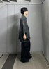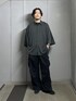 とろみ感のあるオーバーサイズのシャツにパラシュートパンツを合わせたモードなスタイリング モノトーンでクールな雰囲気に