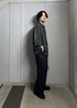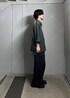 チャコールグレー×ブラックでモードなカジュアルスタイルに ツヤのあるアイテムで統一することでより雰囲気をプラス