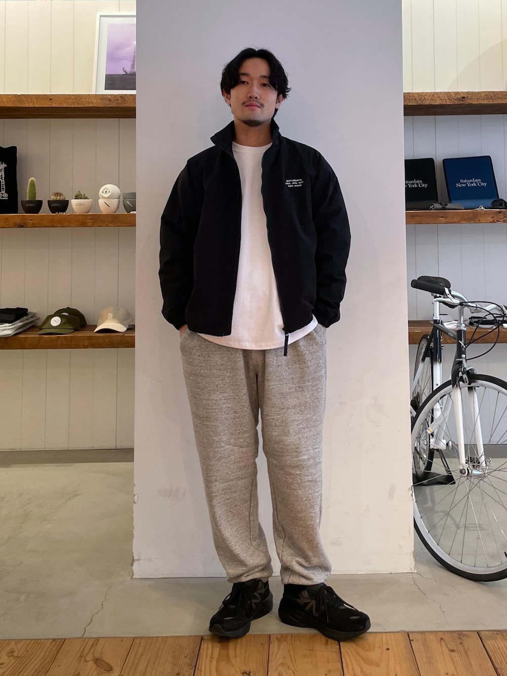 (着用画像の色味が変わって見えることがございます。アイテムページでのカラーの見え方が1番近いのでチェックされてください。) (個人的なアイテムの着用感想を記載しております。アイテムの詳しいサイズ感、生地感等もアイテムページにてご確認ください。) ●スタッフ情報● 大きさの参考にご利用下さい。 身長 174cm 体重 68kg ウエスト 72cm ---------------------------- 休日のラフなスタイルをイメージ、モノトーンで合わせればアーバンな雰囲気に。 トラックジャケットはあえて抑えめなサイズでAラインとってます。
