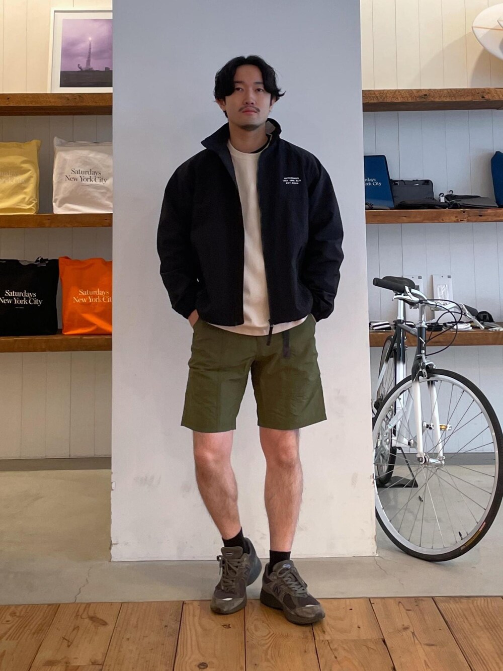 (着用画像の色味が変わって見えることがございます。アイテムページでのカラーの見え方が1番近いのでチェックされてください。) (個人的なアイテムの着用感想を記載しております。アイテムの詳しいサイズ感、生地感等もアイテムページにてご確認ください。) ●スタッフ情報● 大きさの参考にご利用下さい。 身長 174cm 体重 68kg ウエスト 72cm ---------------------------- トレーニングジャケット×ショーツ GRAMICCIに別注をかけたショーツを使用 トレーニングジャケットとショーツはサイズバランスをとり、スポーティーな組み合わせながらアーバンな着こなしに 街中はもちろん、アウトドアシーンにも対応するスタイリング