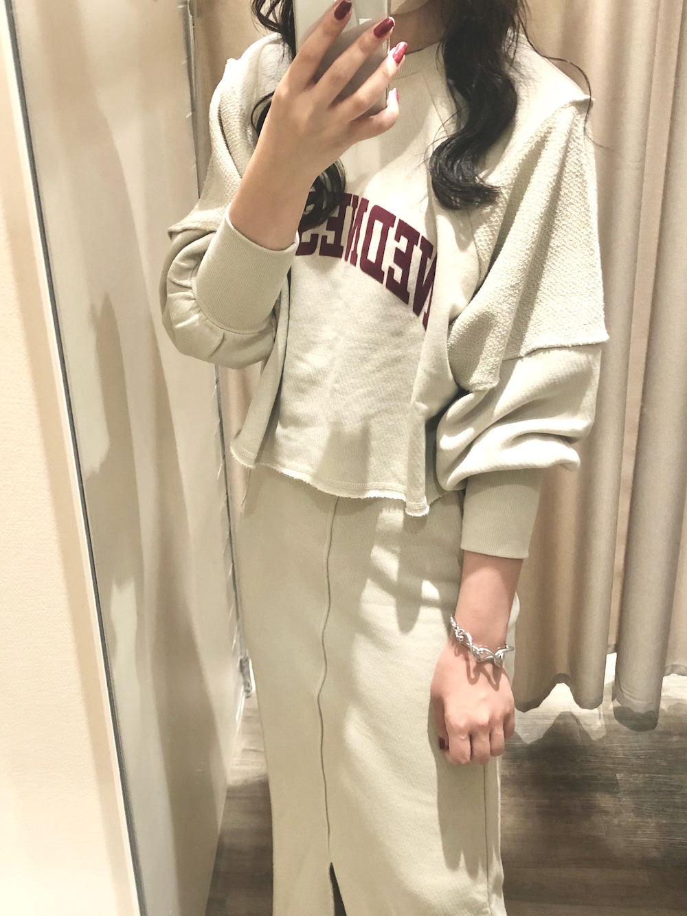 minami(Kastane 金沢フォーラス店)のTシャツ/カットソー「【SETUP対応】SETUP クロップドロゴスウェット」を使ったコーディネート
