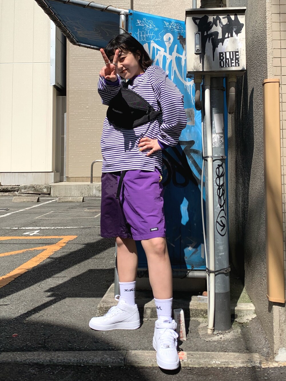 メンズっぽい、 楽チンコーディネート💜🖤💜 ボーダーのシンプルなロンTに 左右の切り返しが可愛いハーフパンツで シルエットも色味もバランスよく👌🥺 オススメはパンツで、 アジャスター調節つきで女の子でも 着やすい!!!! 🧸instagram @___moeeeee ご覧頂き有難う御座います🙇♀️