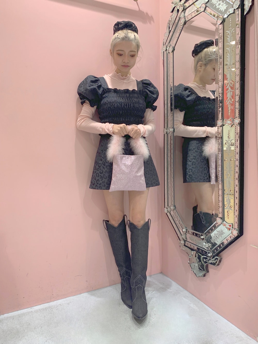 ブラックのセットアップにピンクの 差し色🐆💕✨