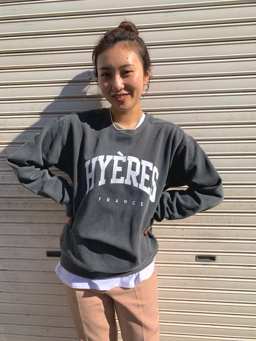 流行りのロゴスウェット🦋 大人カジュアルに、カラーパンツを合わせてコーディネートしました♪♪ スウェットの色褪せ感がヴィンテージの雰囲気を出してくれて 大人ヴィンテージを演出してくれます🧡