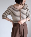 okazaki risa(Kastane 金沢フォーラス店)のカーディガン/ボレロ「ループヤーンマルチボーダー5分袖カーディガン」を使ったコーディネート