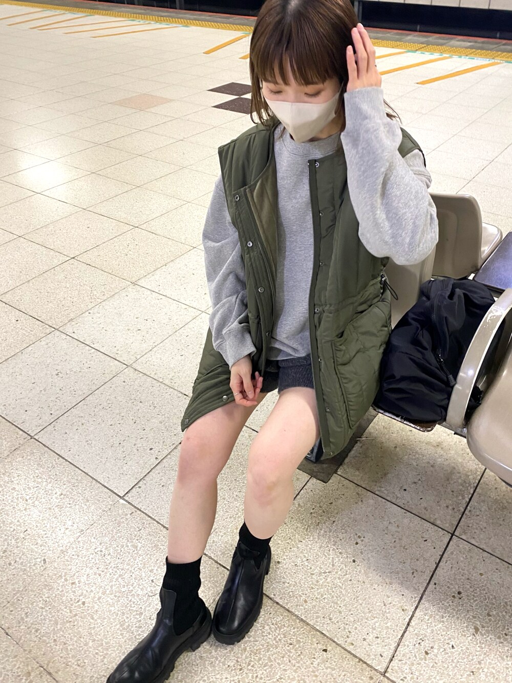 okazaki risa(Kastane 金沢フォーラス店)のベスト「【リバーシブル】ナイロン×ベロアリバーシブルベスト」を使ったコーディネート