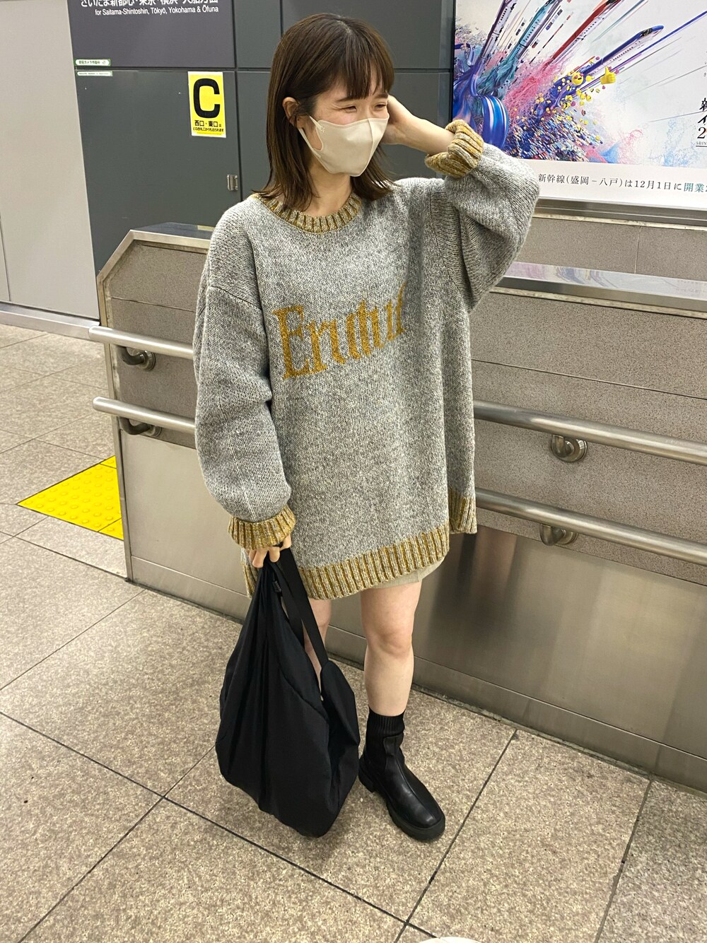 okazaki risa(Kastane 金沢フォーラス店)のニット/セーター「メランジロゴニット」を使ったコーディネート