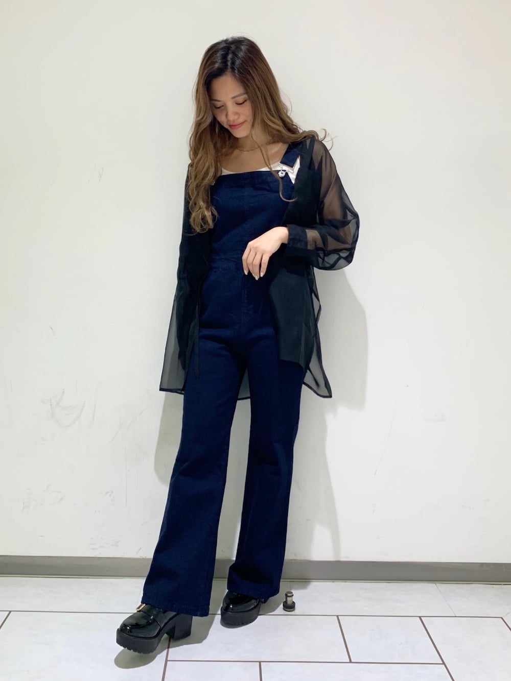 カジュアルサロペットをあえてキャミソールとシャツで合わせて肌見せ抜け感コーデをつくりました!サロペはストレッチが効いてるのでとても履きやすいです!