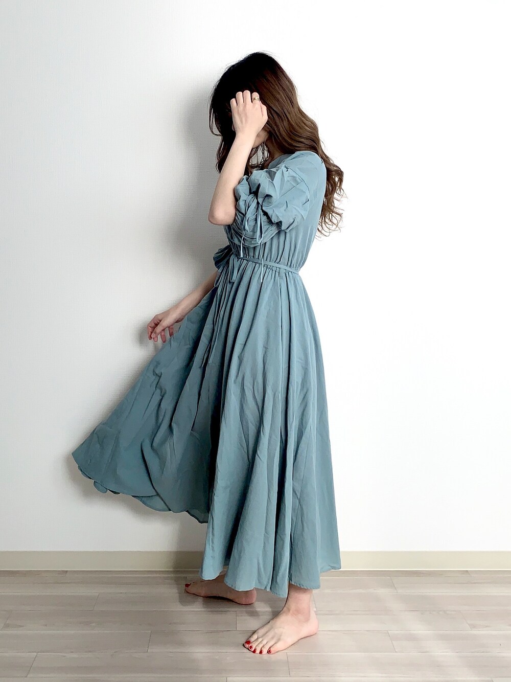 Sachiyoのワンピース「ソデボリュームコットンワンピース 886599」を使ったコーディネート