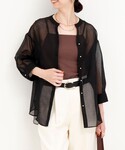 すずき ちか(ノーリーズアウトレット南大沢店)のシャツ/ブラウス「シアーリネンライクシャツ バイカラー」を使ったコーディネート