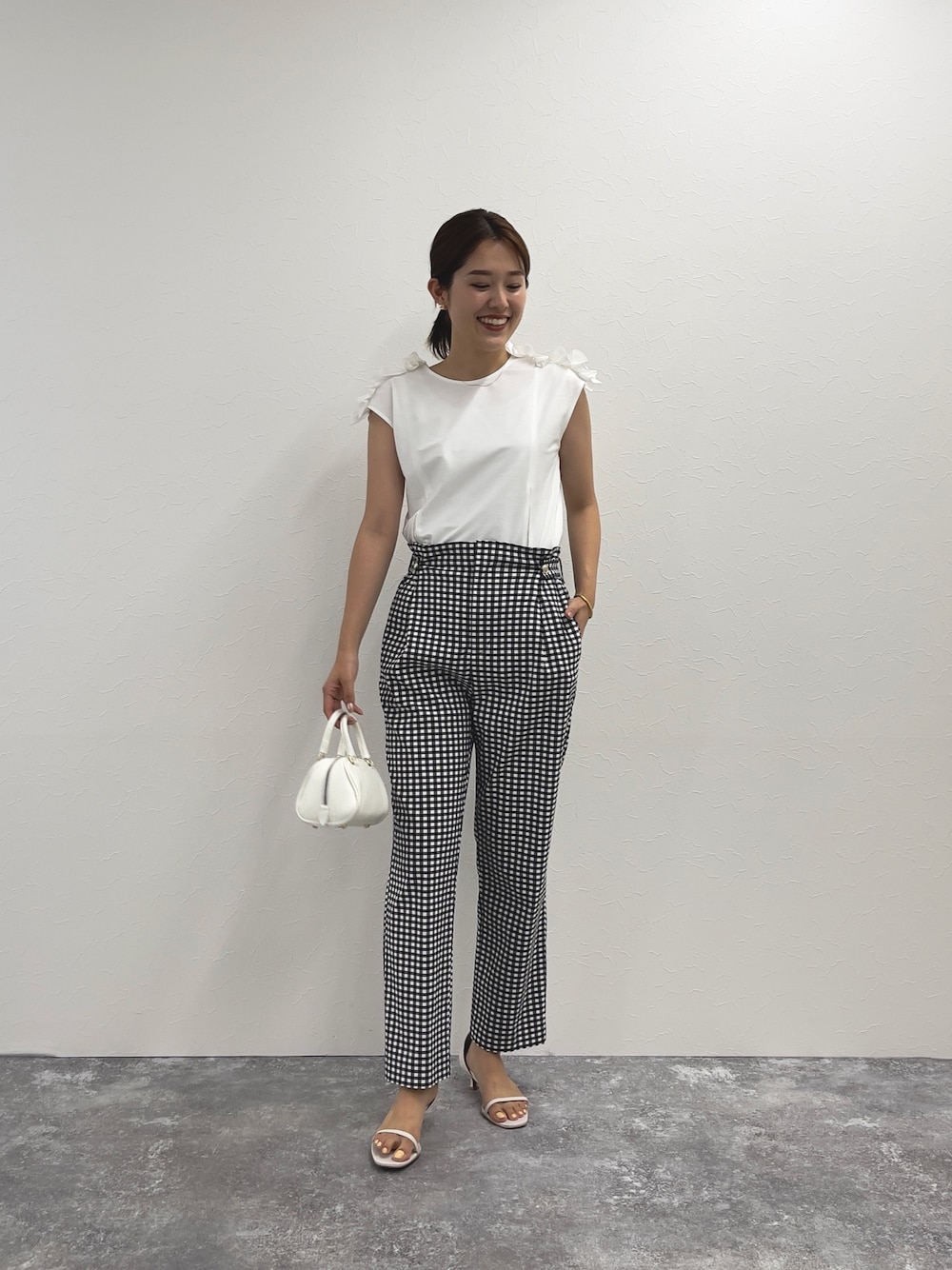 【インスタライブでご紹介したコーデ】 本日インスタライブでご紹介したコーデです✨ 肩のフリルが特徴のカットソー‼︎ 1枚で着映えするトップスです 切り替えのデザインで裾にかけてフレアになっているので ウエストがすっきりして見えるのがポイント‼︎ ワイドパンツやフレアスカートなどの時は インをしても◎ タイトスカートや細身パンツの時は アウトシルエットがおすすめです。