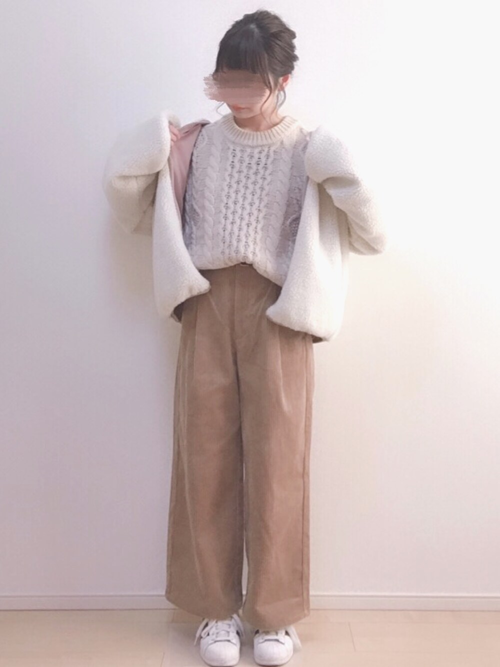 a o i *のニット/セーター「ケーブル編み袖ボリュームニット」を使ったコーディネート