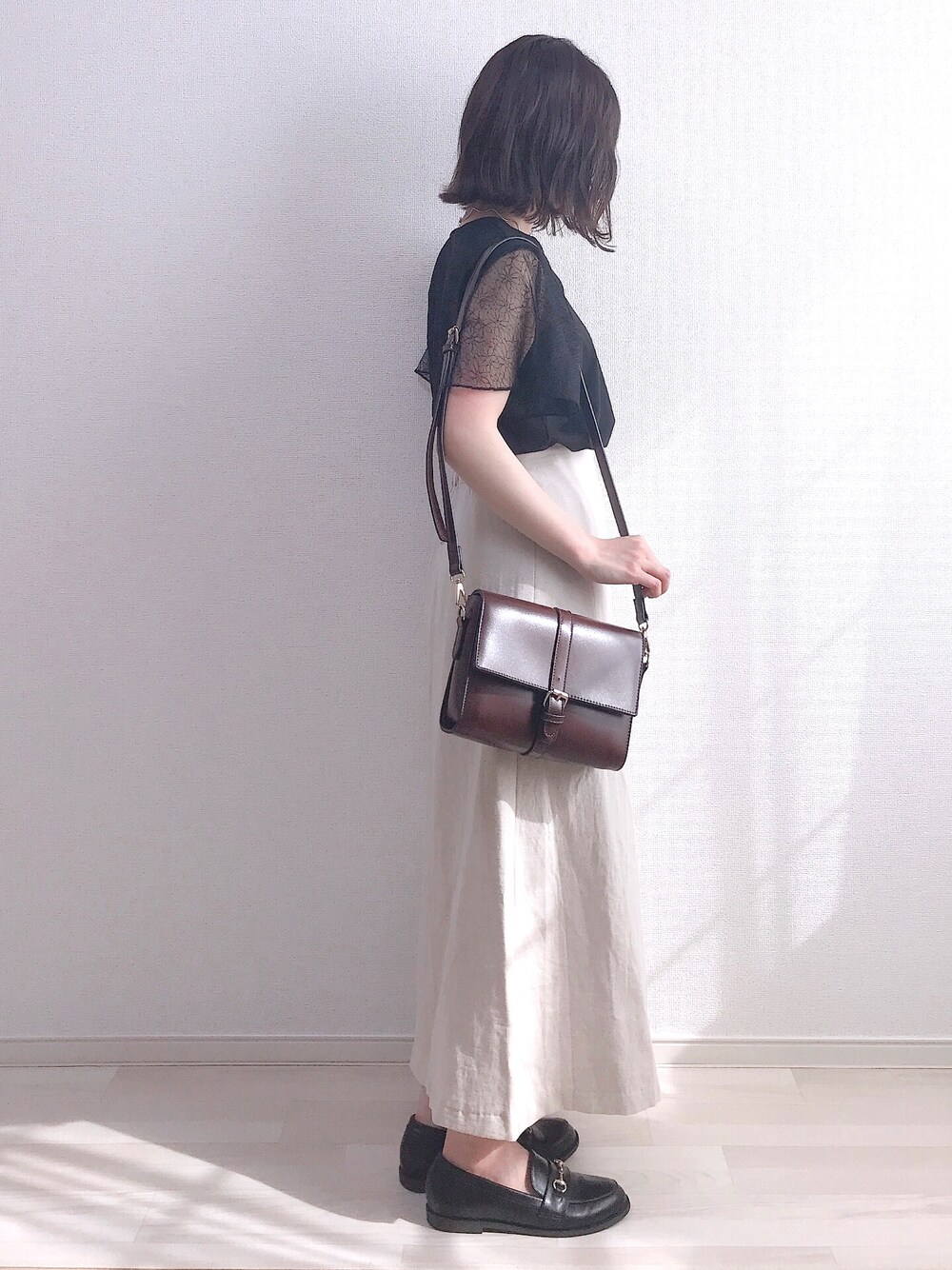 a o i *のTシャツ/カットソー「花柄シースルーレース 袖フリル カットソー」を使ったコーディネート