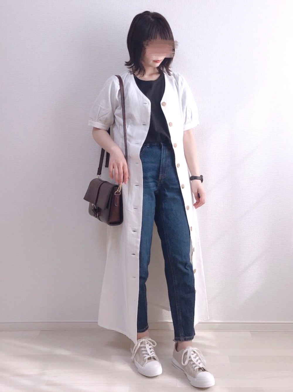 a o i *のワンピース「ウエストタックリネンシャツワンピース」を使ったコーディネート