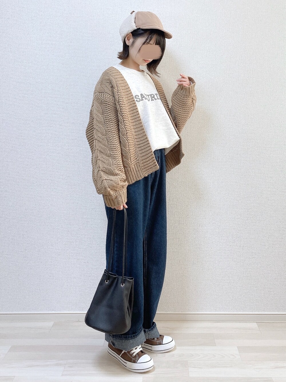 a o i *のカーディガン/ボレロ「ボリュームニットカーディガン」を使ったコーディネート
