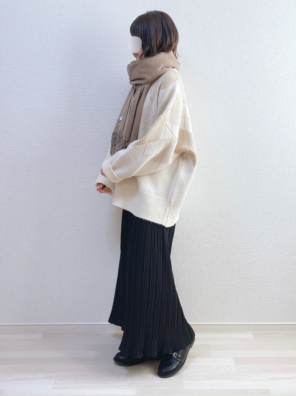 見てくださりありがとうございます✩︎⡱ ルーズな アーガイル柄のニット お気に入りです🤤 ストールは 去年から 愛用してるものです! 夜 更新のInstagramで アウターver. 載せます₍ᵔ·͈༝·͈ᵔ₎🧡 Instagram ⇨ @_a03man_