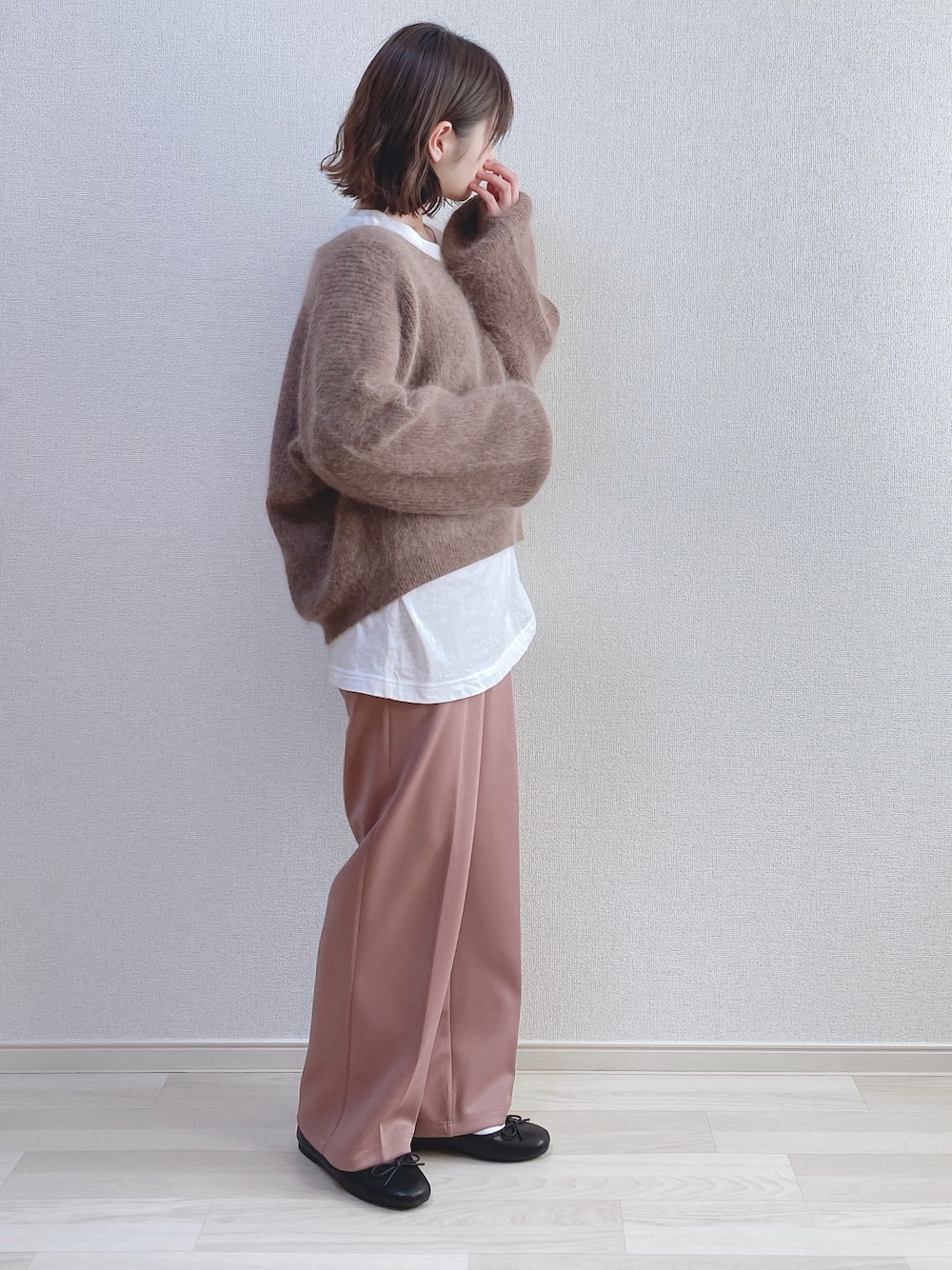 見てくださりありがとうございます𖧷𓂃 GUの カットソースラックス - PINK Sサイズ - 試着して即決でした! ブラウンニットにレイヤード🤎 ニットの前が短くなってるので 前後で白Tの面積がちょっと違います! Instagram ⇨ @_a03man_