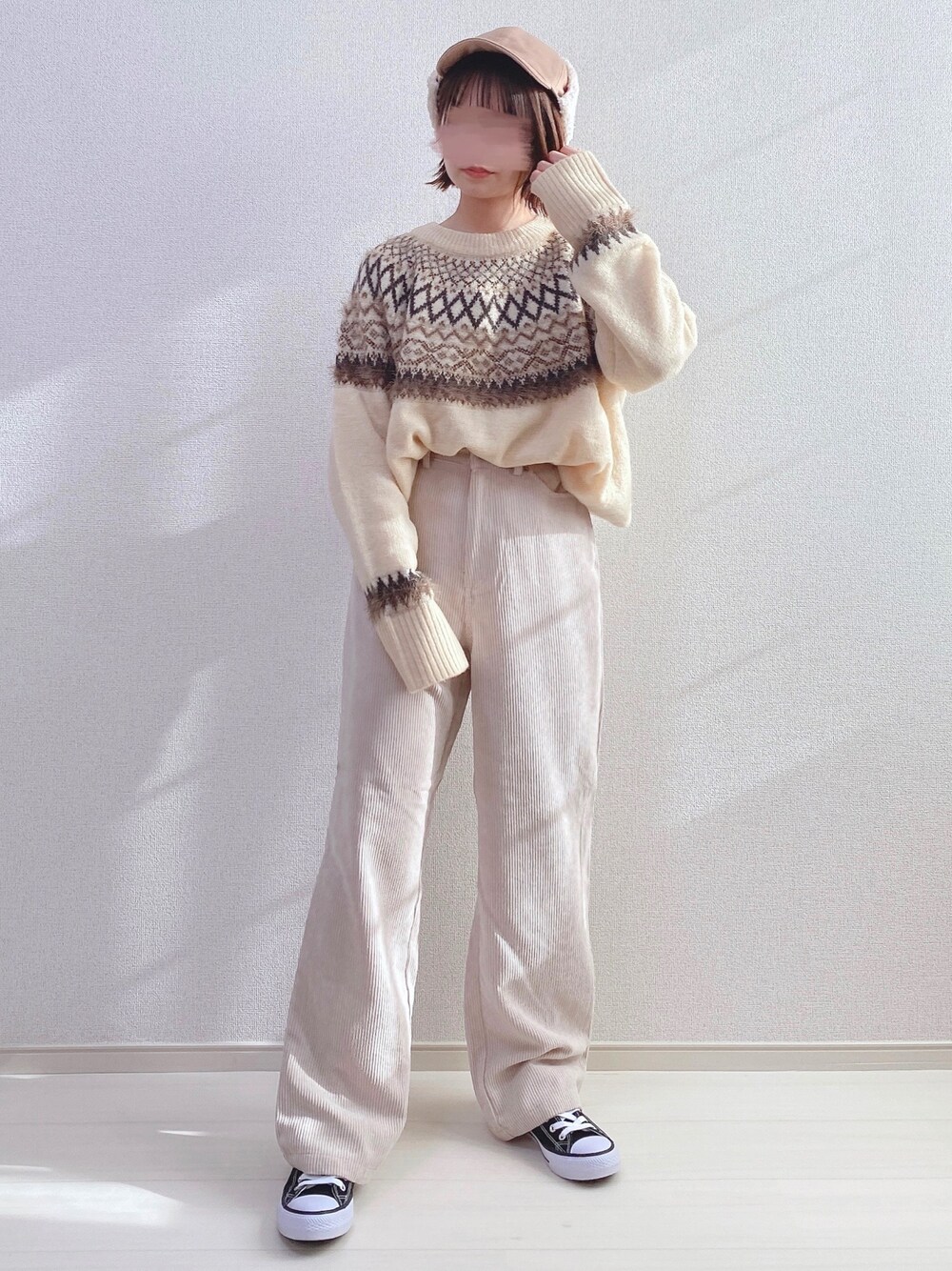 a o i *のニット/セーター「ノルディック柄オーバーサイズニット」を使ったコーディネート