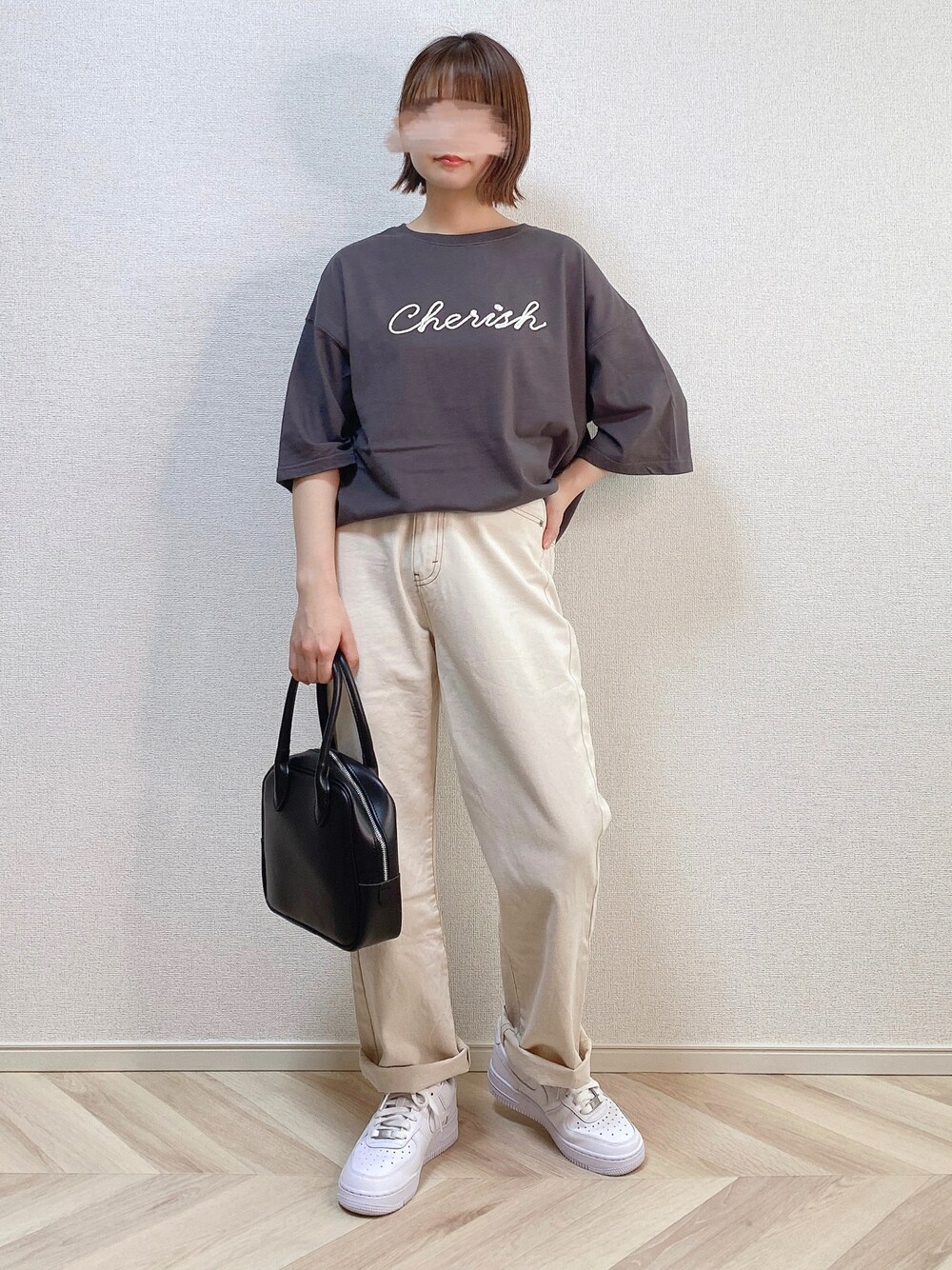 a o i *のTシャツ/カットソー「あおいさんコラボCherishロープ刺繍ゆるT」を使ったコーディネート