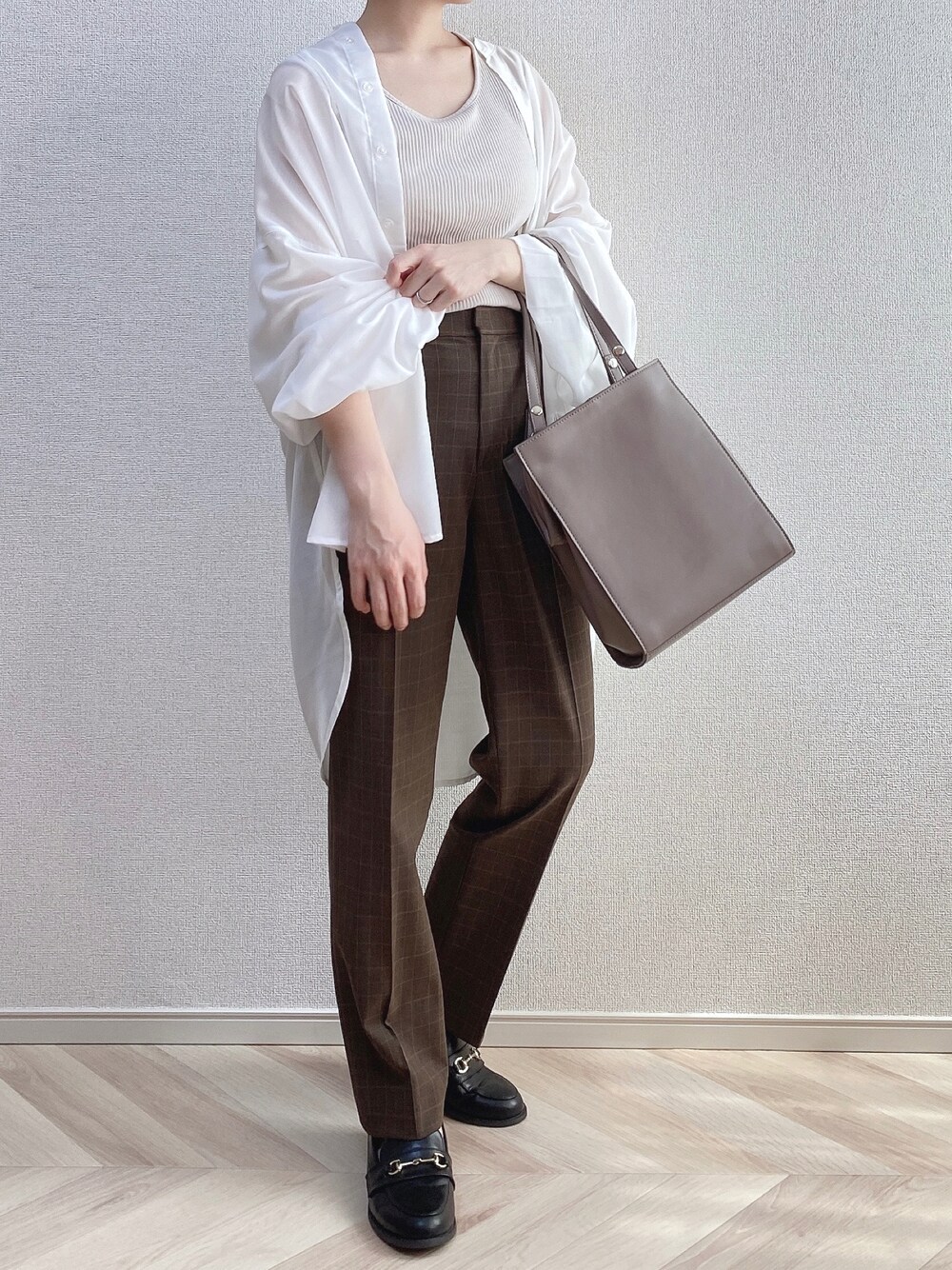 a o i *のシャツ/ブラウス「シアーバルーンスリーブオーバーシャツ」を使ったコーディネート