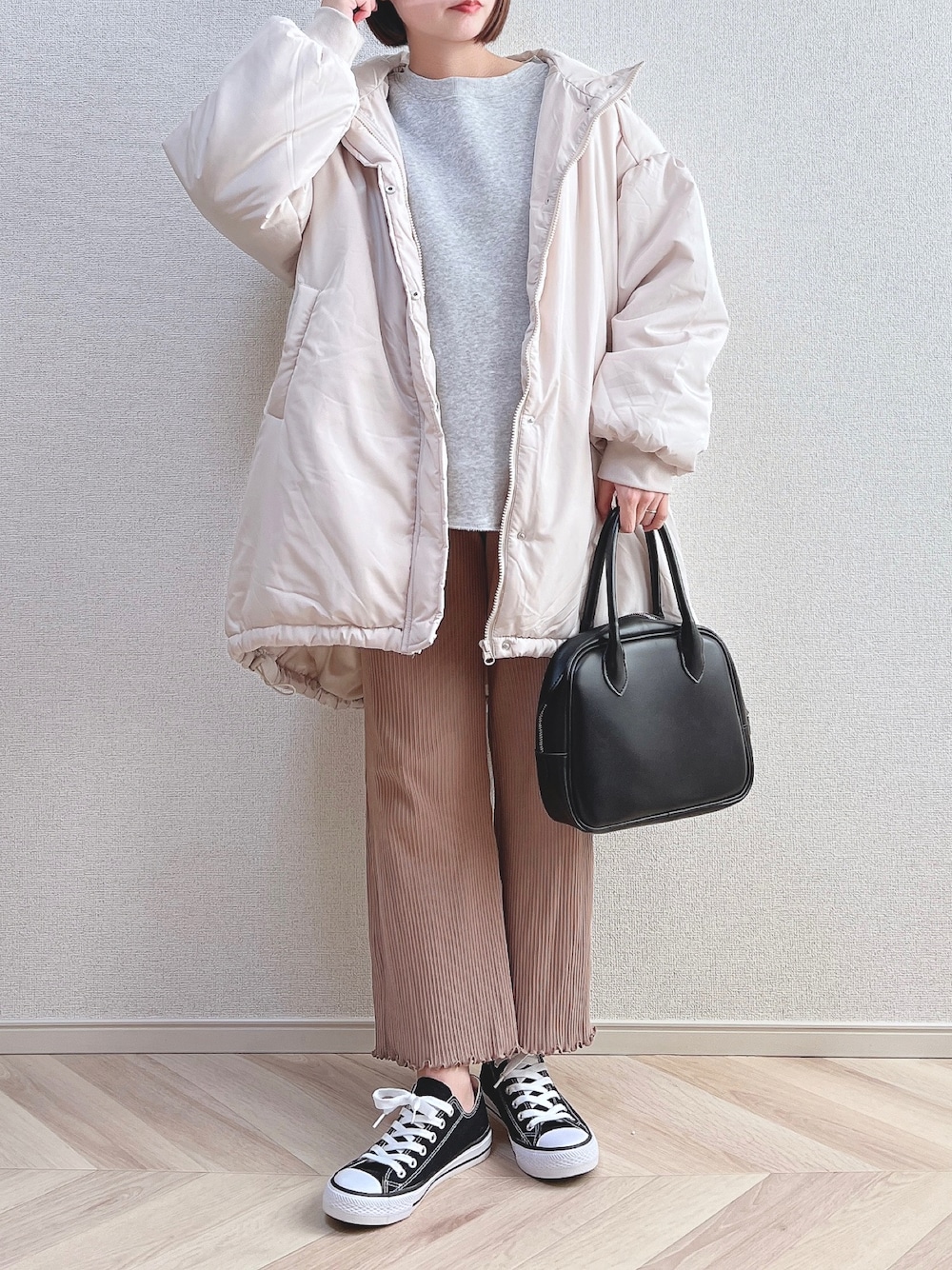 a o i *のスウェット「ヘビーウェイト変形ラウンドヘムクルーネックスウェット」を使ったコーディネート