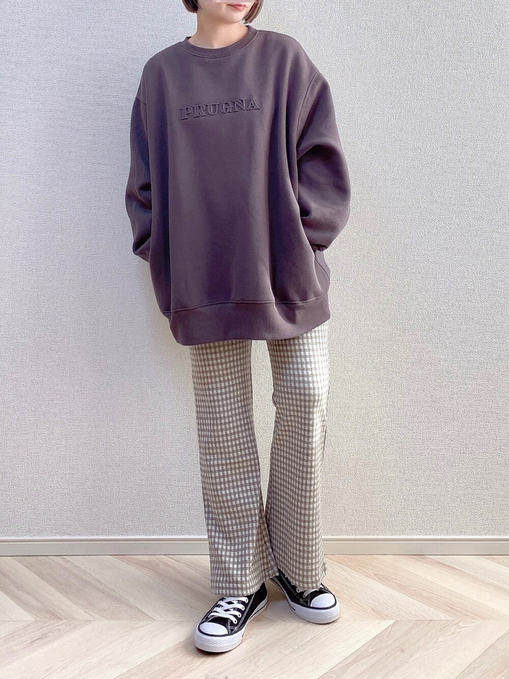 a o i *のスウェット「あおいさんコラボエンボスユニセックス裏毛プルオーバー」を使ったコーディネート