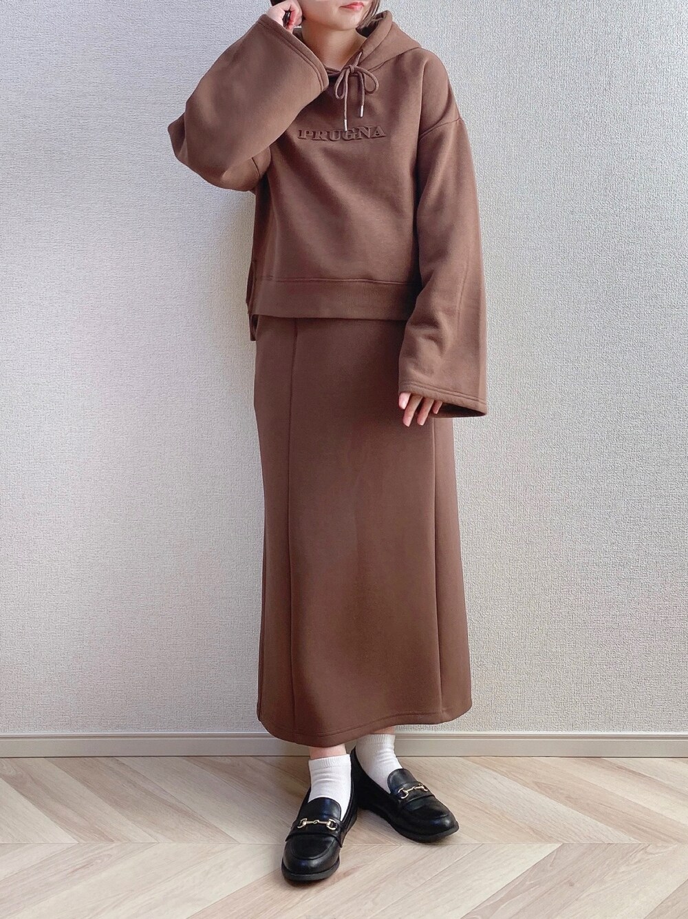 a o i *のパーカー「あおいさんコラボエンボスロゴフレア袖パーカー」を使ったコーディネート