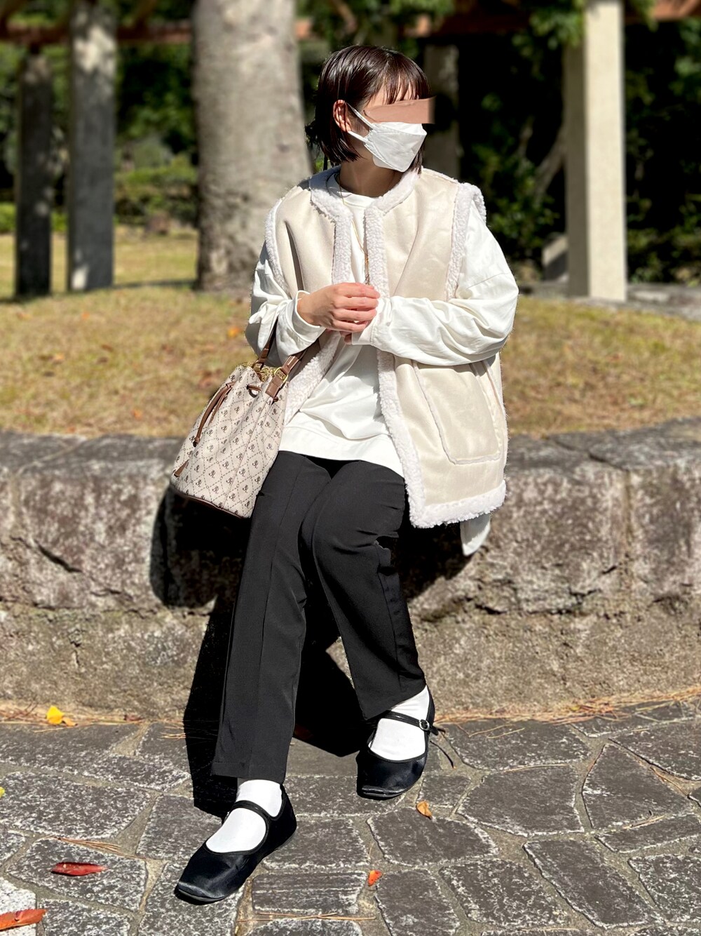 a o i *のベスト「2022AWアイテム/秋冬には欠かせないボアアイテム リバーシブルベスト」を使ったコーディネート
