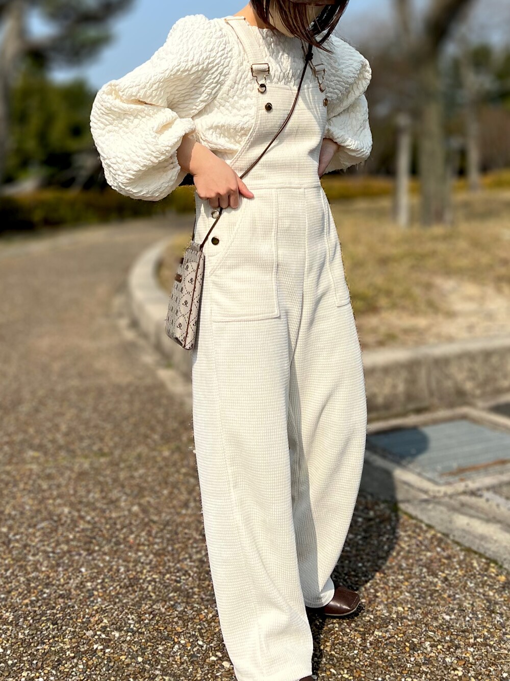 a o i *のサロペット/オーバーオール「ワッフルコーデュロイサロペ」を使ったコーディネート